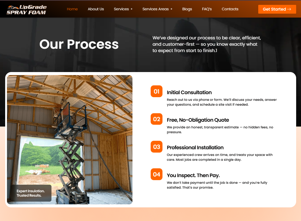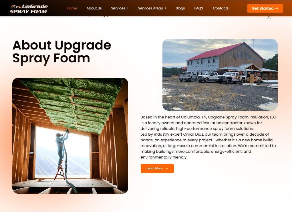 The existing website had a basic layout that did not effectively communicate the company’s spray foam insulation services. Important information about residential and commercial solutions was difficult to find, and the visual presentation lacked credibility. The structure did not guide visitors toward inquiries or estimates. The main challenge was to redesign the interface with clearer service segmentation, stronger messaging, and improved usability while maintaining brand consistency and industry relevance.